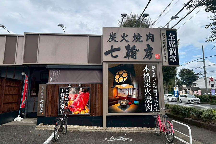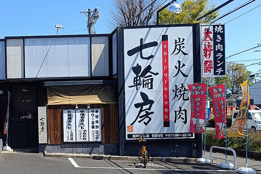 安楽亭グループである炭火焼肉 七輪房 所沢新新井店様の看板、塗装などの施工を行いました。