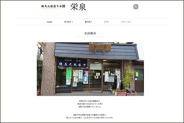 大泉学園駅北口、桜並木通りを15分ほど下った所にある、和菓子店「栄泉」様。